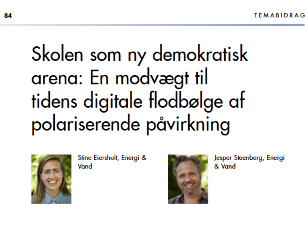 Screenshot af MONA-artiklen "skolen som ny demokratisk arena: En modvægt til tidens digitale flodbølge af polariserende påvirkning". Et temabidrag til MONA - skrevet af Stine Eiersholt og Jesper Steenberg ENERGI & VAND